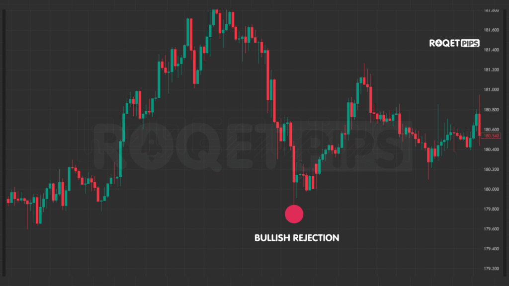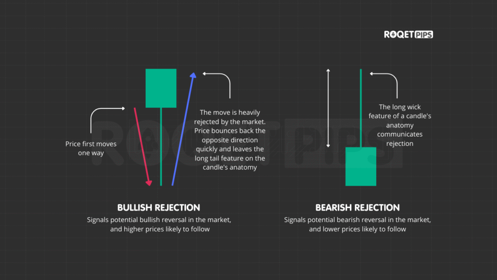 - If the market stays away from the wick and moves in the opposite direction, the rejection is confirmed as a trend reversal.
